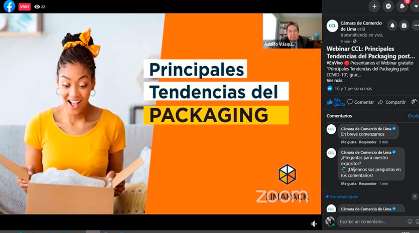 El Gremio de Servicios, a través de su Sector Gráficos, organizó el webinar Principales Tendencias del Packaging post COVID-19, evento a cargo de Adolfo Vásquez Quijada, director de Limapack Solutions. El evento tuvo como finalidad dar a conocer las principales tendencias del packaging post COVID-19 para su implementación en el corto y mediano plazo. Para participar en los webinars del gremio de servicios puede contactarse al correo gremioservicios@camaralima.org.pe o al teléfono 219-1823.
