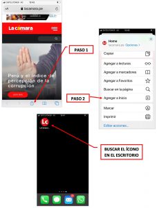 Abrir el navegador de internet Safari, ingresar a la web de la revista digital lacamara.pe y seguir los siguientes pasos: