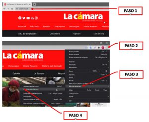 Abrir el navegador de internet Google Chrome, ingresar a la web de la revista digital lacamara.pe y seguir los siguientes pasos: