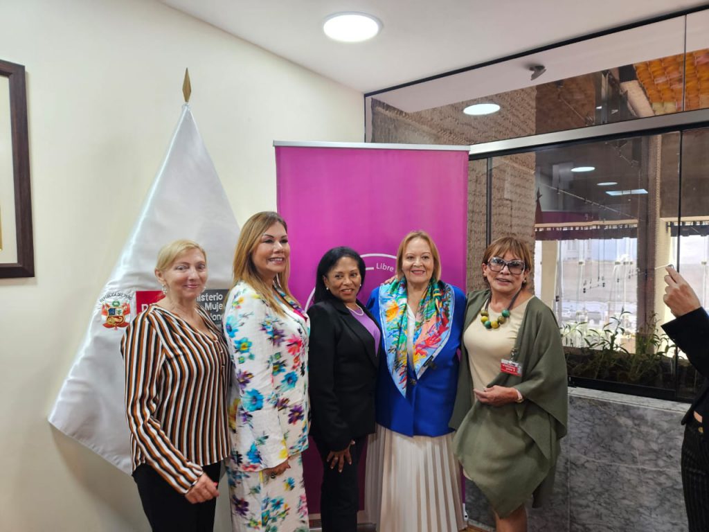 En el marco de la convocatoria a la VI Edición de la Marca de Certificación “Empresa Segura, Libre de Violencia y Discriminación contra la Mujer”, iniciativa promovida por el Ministerio de la Mujer y Poblaciones Vulnerables (MIMP), la presidenta de la Comisión de Desarrollo de la Mujer Empresaria de la Cámara de Comercio de Lima (CCL), Yolanda Torriani, así como las directoras representantes de esta comisión, Marina Bustamante, Erika Cavero y Gabriela Fiorini, participaron en el encuentro ejecutivo con lideresas de los gremios empresariales. La referida iniciativa reconoce al empresariado como un aliado estratégico para la promoción de la igualdad de oportunidades entre hombres y mujeres y la prevención de la violencia en la sociedad.