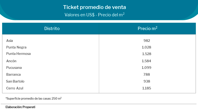 Vale precisar que cada zona atrae a un diferente público objetivo, en especial bajo el criterio de presupuesto. En ese sentido, los distritos más demandados para comprar son: Asia, San Bartolo y Punta Hermosa.
