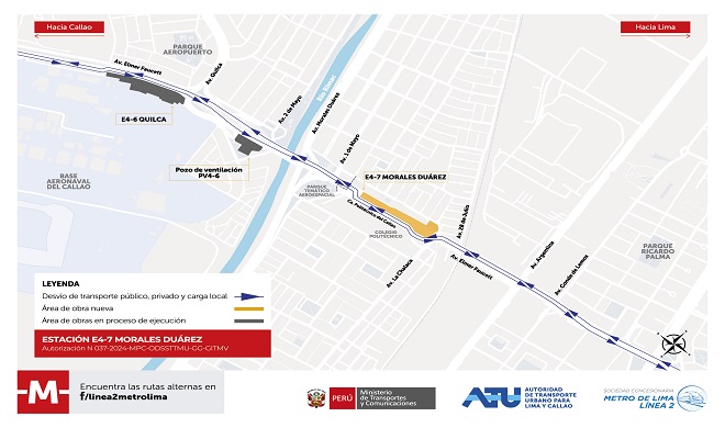 Este plan de desvío fue elaborado por la Concesionaria Metro de Lima Línea 2 S.A. y autorizado por la Municipalidad Provincial del Callao.