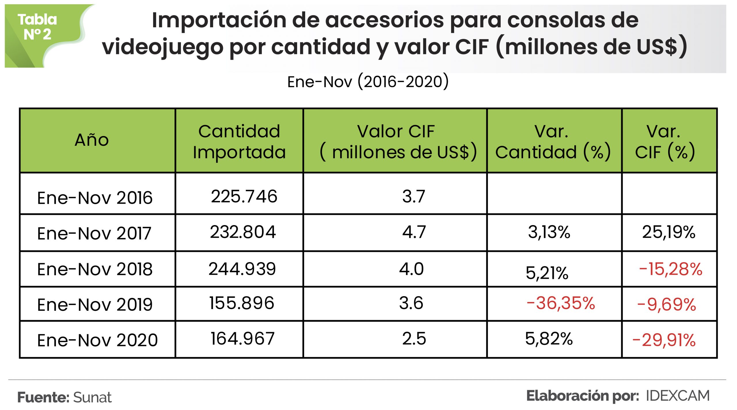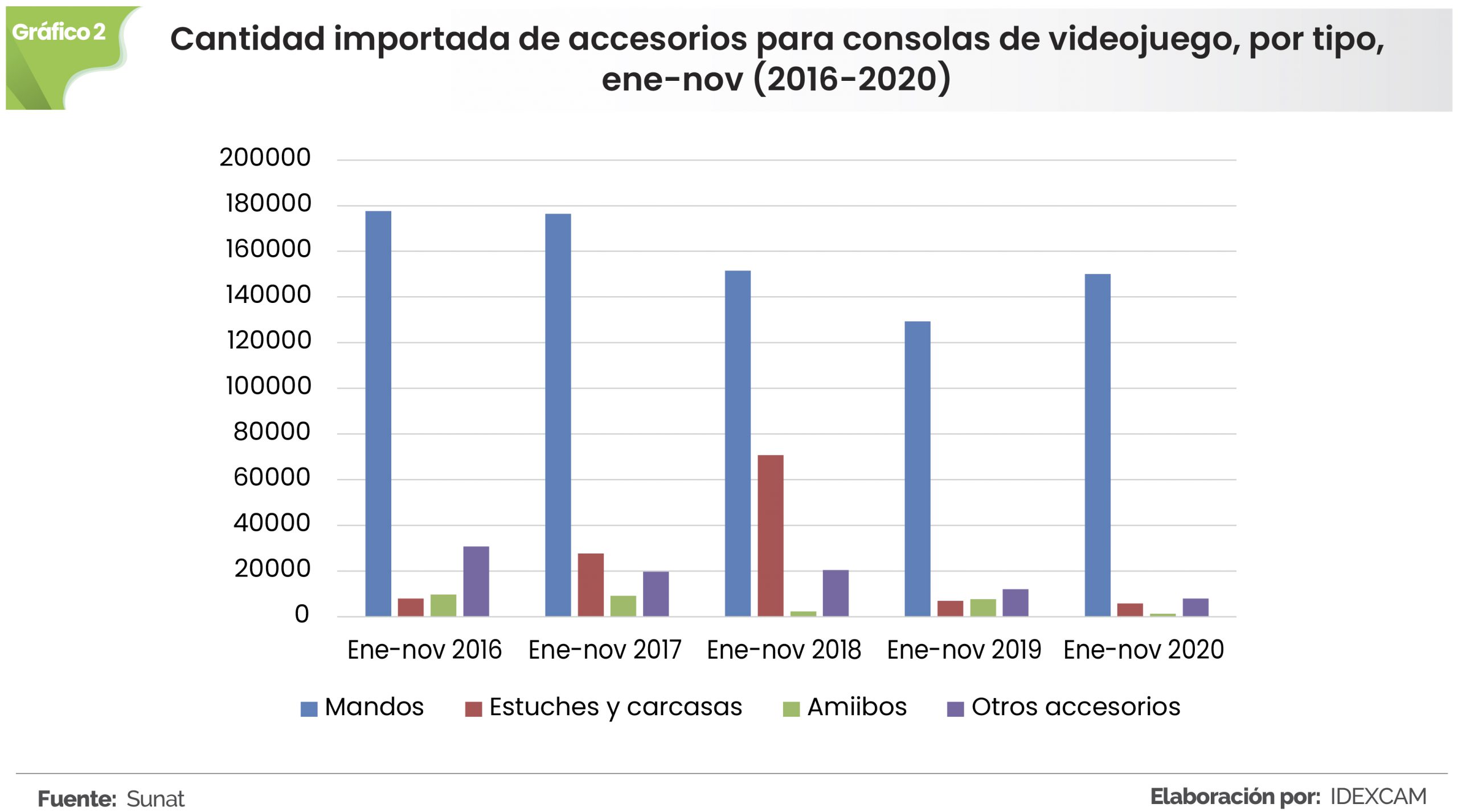 Las importaciones peruanas de consolas de videojuegos aumentaron durante el año 2020. Entre enero y noviembre de este año se importaron 190.952 unidades, lo que significó un aumento de 13,34% con relación al mismo periodo del 2019, reportó el Instituto de Investigación y Desarrollo de Comercio Exterior de la CCL (Idexcam).