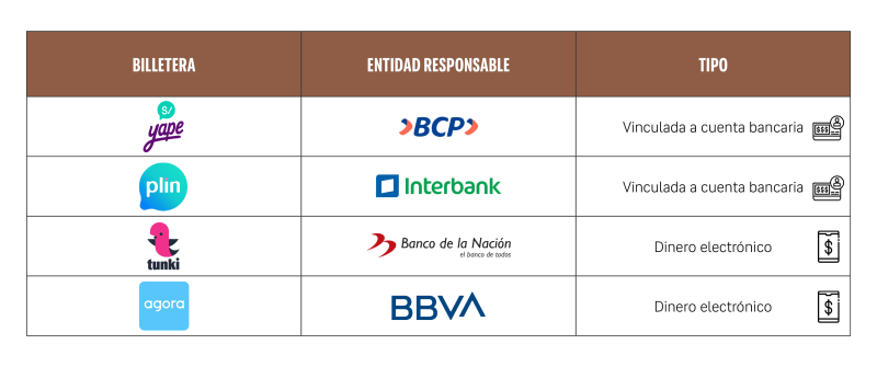 Actualmente, las siguientes billeteras digitales supervisadas por la SBS están autorizadas: