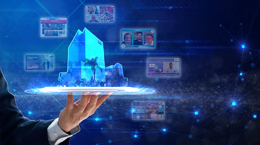 Igualmente, el Centro de Convenciones Virtual permite realizar eventos en vivo que son compartidos en tiempo real a través de las redes sociales, ofrece el servicio 360° para reuniones, seminarios, conferencias y webinars, incluso de forma híbrida (virtual y presencial), entre otros.