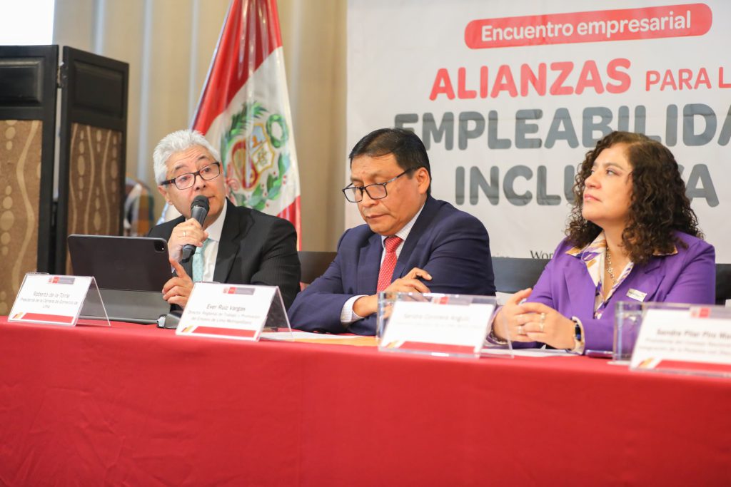 En su intervención, durante el evento “Alianzas para la Empleabilidad Inclusiva”, organizado por el Ministerio de Trabajo y Promoción del Empleo (MTPE), exhortó a empresarios y gremios empresariales a incorporar a grupos vulnerables, como adultos mayores, personas con discapacidad y migrantes, en el mercado laboral, subrayando su aporte clave para el desarrollo económico y social del país.