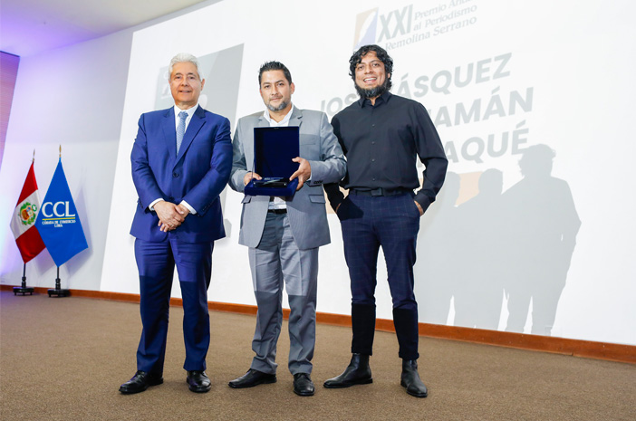 Periodistas de Latina, América Televisión y Perú 21 fueron los ganadores del XXI Premio Anual al Periodismo Ramón Remolina Serrano de la Cámara de Comercio de Lima (CCL) que este año premió investigaciones sobre “Economías ilegales y su impacto en el futuro del país”.