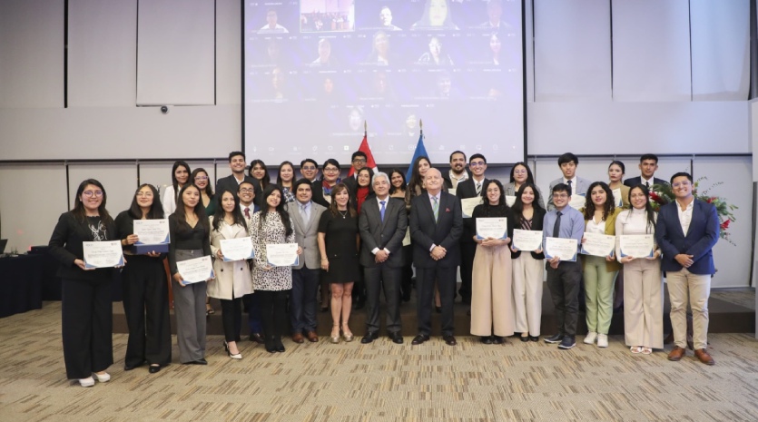Destacó que los jóvenes tienen el desafío de cambiar la actual percepción que la población tiene sobre las instituciones públicas. “En el reciente informe del Instituto Nacional de Estadística e Informativa -INEI- respecto a la percepción ciudadana sobre gobernabilidad, democracia y confianza en las instituciones, correspondiente a los meses de abril a septiembre del 2024, se señala que el 71.2% de los peruanos opina que la democracia en el Perú funciona mal o muy mal, y que el 88.1% señala como responsables a los políticos de turno”, afirmó.