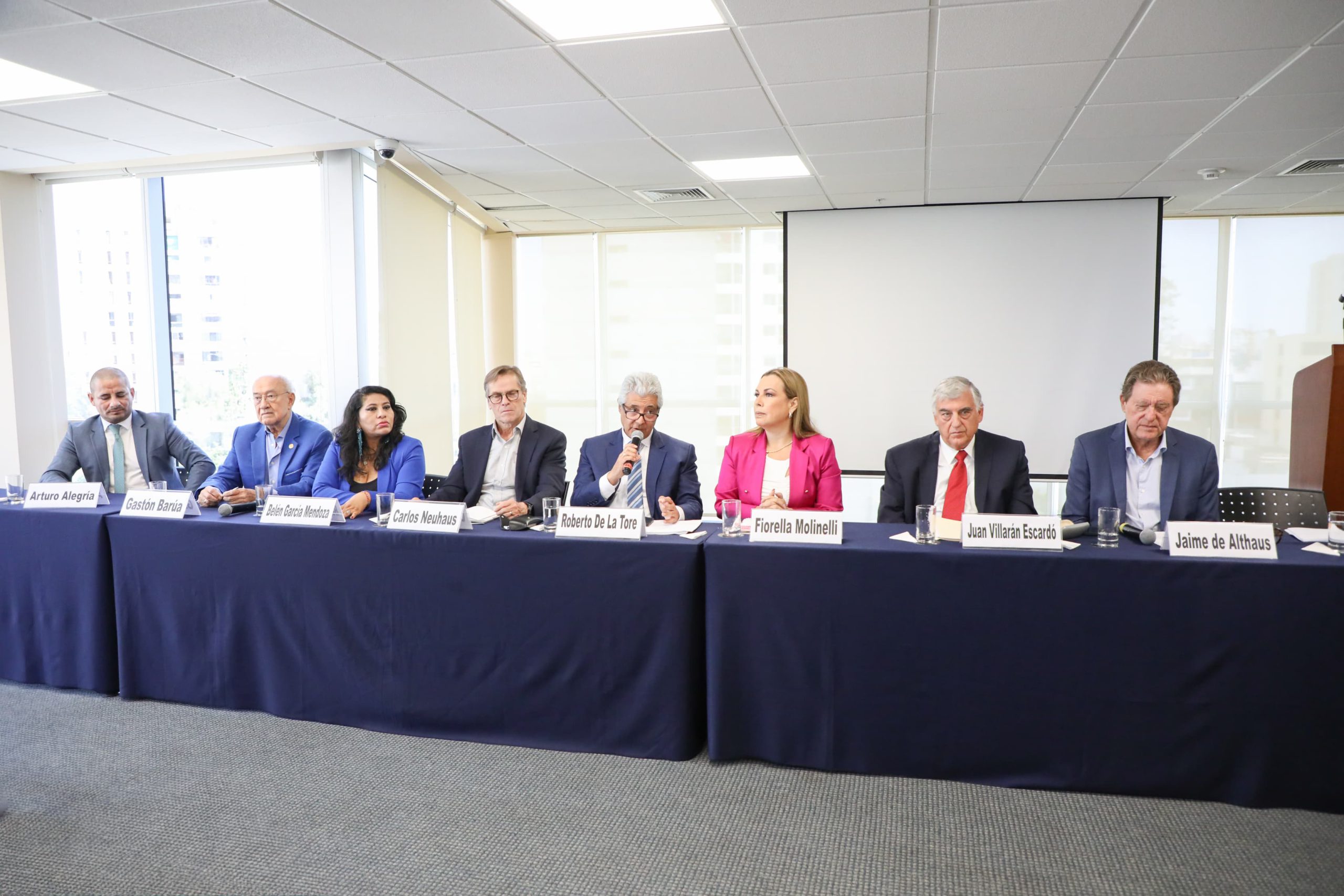 Ello tras la suscripción del documento “Política de seguridad y lucha contra la criminalidad”, el cual cuenta con el respaldo de Avanza País, Fuerza Popular, el APRA, PPC, Fuerza Moderna y Unidad y Paz. Este acto se realizó en las instalaciones del gremio empresarial donde también asistieron Juan Villarán, Carlos Neuhaus, Fiorella Molinelli, Jaime de Althaus, Belén García, Jorge del Castillo, entre otros.