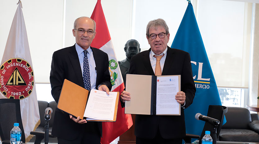 La Cámara de Comercio de Lima (CCL) y el Consejo Departamental de Lima del Colegio de Ingenieros del Perú (CDLIMA-CIP) firmaron el Convenio Marco de Cooperación Académica, Cultural y Profesional, a fin de establecer mecanismos e instrumentos de colaboración y beneficio, para el desarrollo del conocimiento, la cultura y la investigación científica y tecnológica.