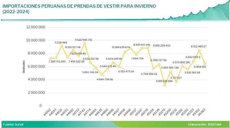 Según los registros estadísticos de la Superintendencia Nacional de Aduanas y de Administración Tributaria (Sunat), entre 2022 y 2024, las importaciones peruanas de ropa de invierno han sido influenciadas por las fluctuaciones climáticas y las condiciones del mercado. China, Bangladesh y Vietnam se mantienen como los principales proveedores debido a sus ventajas competitivas en costos.