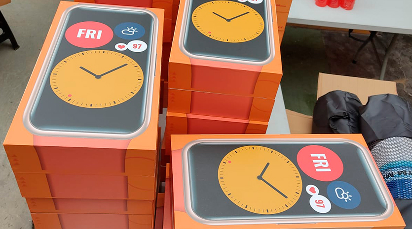 (CCL: 00033507.7) Es una empresa peruana que ha elaborado presentes para el Smartwatch Huawei Watch Fit Stia. Estos obsequios son cajas con implementos deportivos, los que contienen pesas de 3 kilos, bandas elásticas de diversos colores, mat de yoga con funda y snack nutritivo galletas. “Todos estos artículos están en una caja de material mdf especialmente fabricada con branding”, afirma la empresa. Este merchandising fue entregado en Lima en septiembre del 2020.