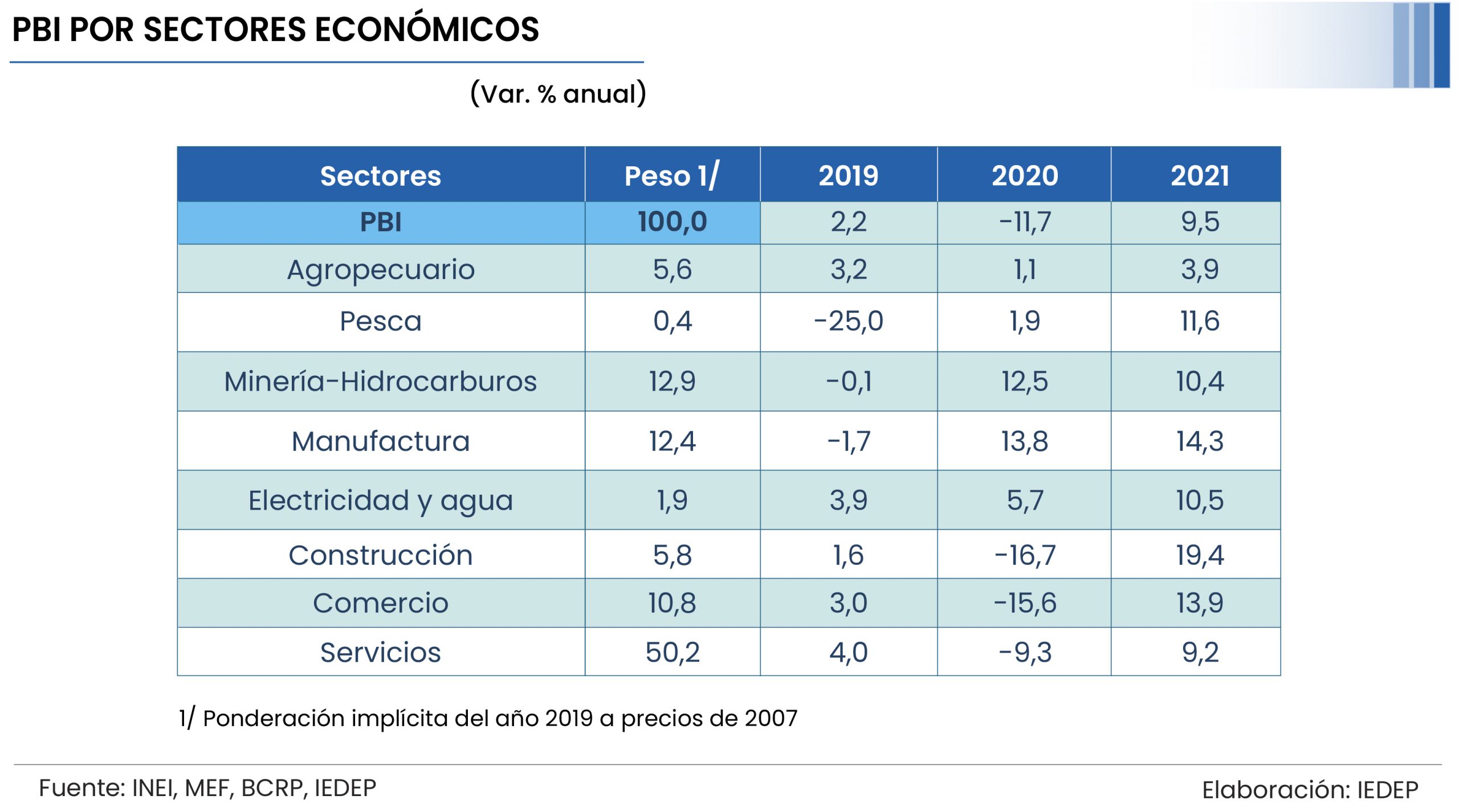 Cabe indicar que según las proyecciones del IEDEP, la economía peruana crecería 9,5% en el 2021 liderando de esta manera la región, pero sin recuperar aún la caída del año previo.