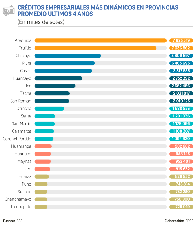 Con datos de la SBS, el IEDEP mapeó el comportamiento de los créditos empresariales e identificó los distritos que registran una mayor participación en el sistema financiero formal.
