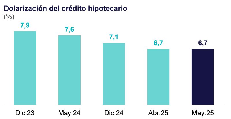 Este incremento fue principalmente favorecido por el aumento de los préstamos hipotecarios otorgados en moneda nacional, que se expandieron un 6,9 % interanual en mayo.