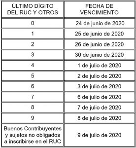 El nuevo cronograma aprobado mediante Resolución de Superintendencia N° 054-2020/SUNAT, publicada hoy en el diario oficial El Peruano, es el siguiente: