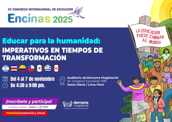 Tras cuatro años de ediciones virtuales, Derrama Magisterial desarrolla de manera presencial el XV Congreso Internacional de Educación Encinas 2025, uno de los encuentros académicos más relevantes del magisterio peruano. El evento se lleva a cabo del 4 al 7 de noviembre, desde las 4:30 p. m., en el auditorio principal de la sede central de la institución, ubicada en Jesús María.