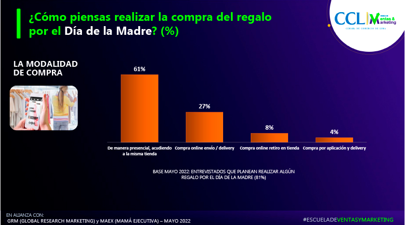 La Escuela de Ventas y Marketing de la Cámara de Comercio de Lima (CCL) en alianza con la investigadora de mercado Global Research Marketing (GRM) y Mamá Ejecutiva realizaron el estudio Celebración Día de la Madre.