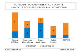 Pueden ser elegibles de recibir financiamiento garantizado por parte de Cofide, las empresas del sistema financiero o las cooperativas que se encuentren inscritas en el Registro Nacional de Cooperativas de Ahorro y de Crédito No Autorizadas a Captar Recursos del Público (Coopac). Hasta el 21 de abril se encontraban habilitadas para otorgar dichos préstamos un total de 23 entidades financieras: nueve cajas municipales de ahorro y crédito, seis financieras, dos cajas rurales, dos Edpymes y cuatro bancos. Hasta el momento, el 43% del total de entidades financieras participan en FAE-Myp. Para incentivar un mayor número de participación, se ha relajado la exigencia de calificación de riesgo de la entidad de C a C- bajo ciertas condiciones.