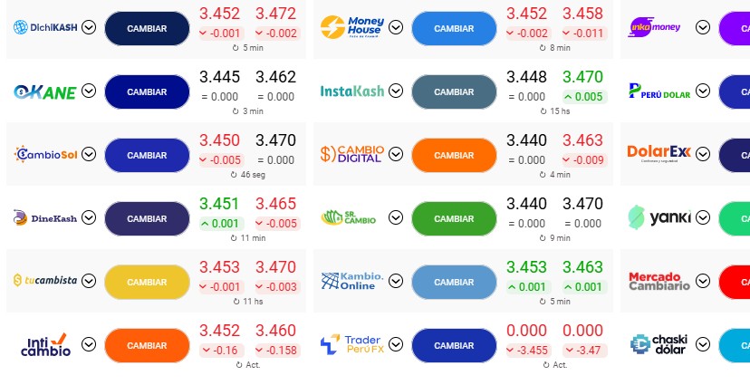 En el mercado paralelo, el dólar se compra por 3.45 soles, similar al cierre del lunes; mientras que se vende por 3.47 soles, 0.01 menos que el día anterior.