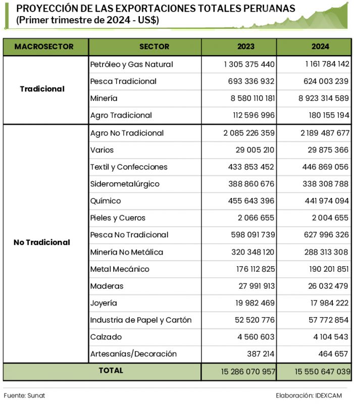 Sin duda, estas proyecciones indican un panorama optimista para las exportaciones peruanas en el primer trimestre de 2024, en medio de un contexto global de desaceleración económica y tensiones geopolíticas.