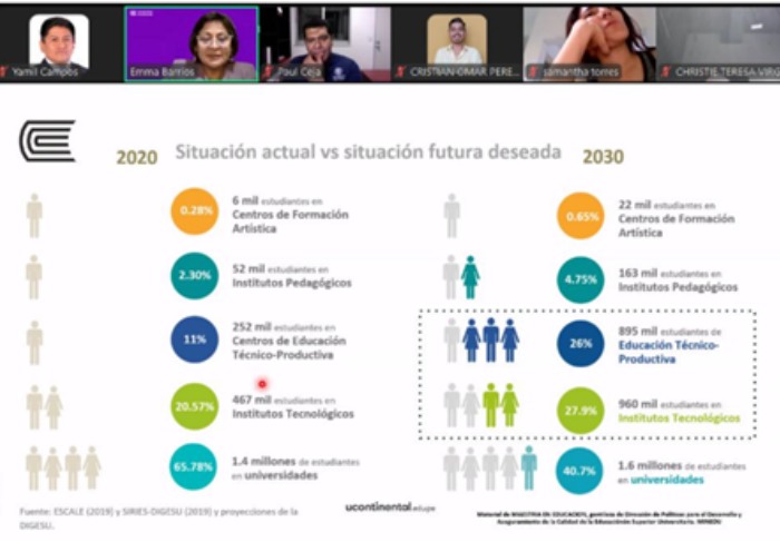 La Escuela de Posgrado de la Universidad Continental desarrolló una clase espejo en coordinación con la Universidad de Colima, en México, como parte de sus actividades académicas orientadas al análisis comparado de la educación superior en la región. La iniciativa estuvo dirigida a estudiantes de la Maestría en Gestión e Innovación Educativa y de la Maestría en Educación con Mención en Docencia en Educación Superior.