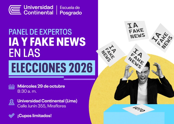 La Escuela de Posgrado de la Universidad Continental, en colaboración con Infobae y Caretas, organizará el panel de expertos “IA y fake news en las elecciones 2026”, un encuentro orientado a analizar los riesgos de la desinformación en el proceso electoral peruano y a proponer medidas para fortalecer la integridad informativa.