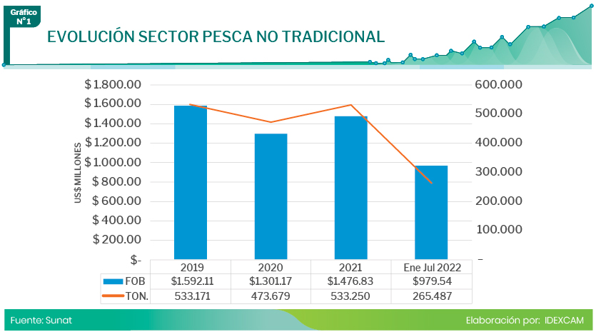 Entre enero y julio de este año, los envíos al exterior del sector pesca no tradicional registran una buena performance en cuanto a volumen y valor.