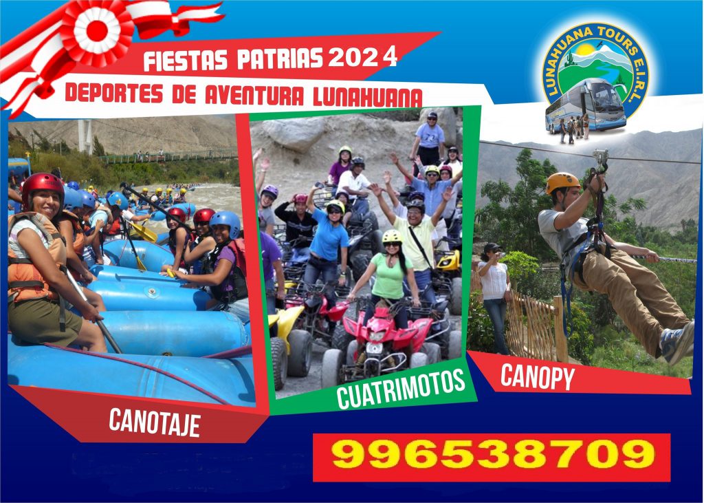 Las Fiestas Patrias 2024 en Lunahuaná prometen ser una celebración vibrante y llena de vida, donde la aventura y la tradición se encuentran en un entorno espectacular. Con la oferta de Lunahuaná Tours, los visitantes tienen la oportunidad perfecta para explorar y disfrutar de esta joya turística, creando recuerdos duraderos y celebrando el orgullo nacional en uno de los destinos más encantadores de Perú.