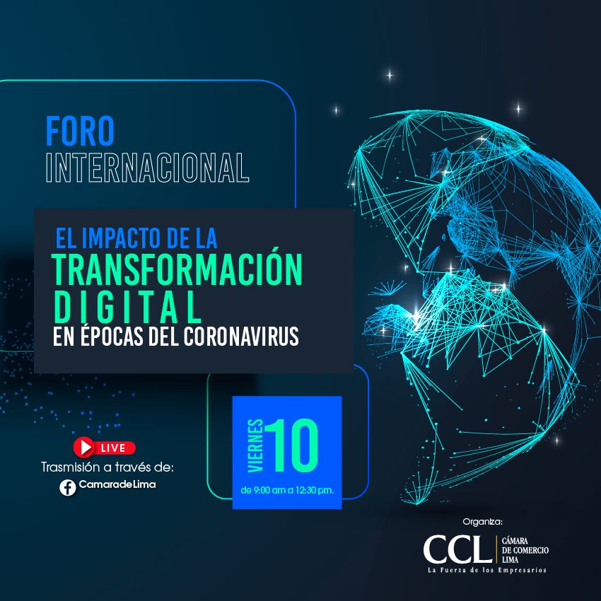 Es en este contexto, este viernes 10 de abril desde las 9:00 a.m., la Cámara de Comercio de Lima, principal gremio empresarial del Perú, organiza el Foro Internacional: El impacto de la Transformación Digital en épocas del coronavirus, el cual se trasmitirá en vivo a través del Facebook oficial de la CCL y en el que los más destacados expertos hablarán del tema y de las mejores estrategias que se pueden aplicar para enfrentar esta crisis.