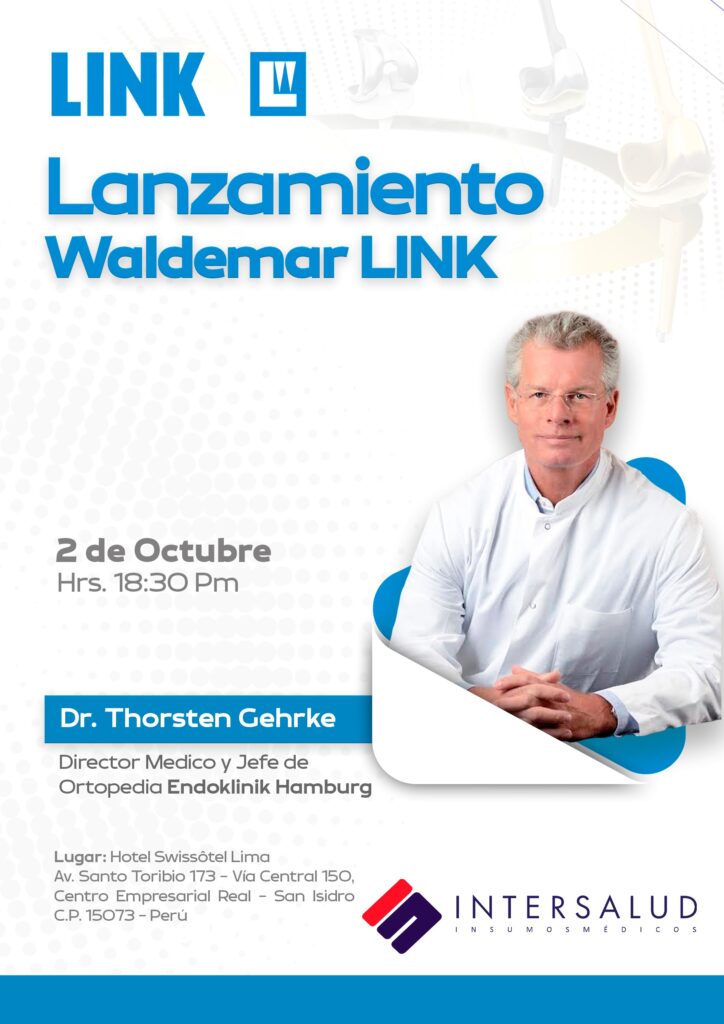 Grupo Intersalud anunció que será representante exclusivo de la marca Waldemar Link en Perú, especializada en soluciones para ortopedia y cirugía. El anuncio se enmarca en un evento de lanzamiento que se llevará a cabo el 2 de octubre en el Swissôtel Lima, el cual reunirá a autoridades del sector, médicos especialistas y representantes de la marca alemana.