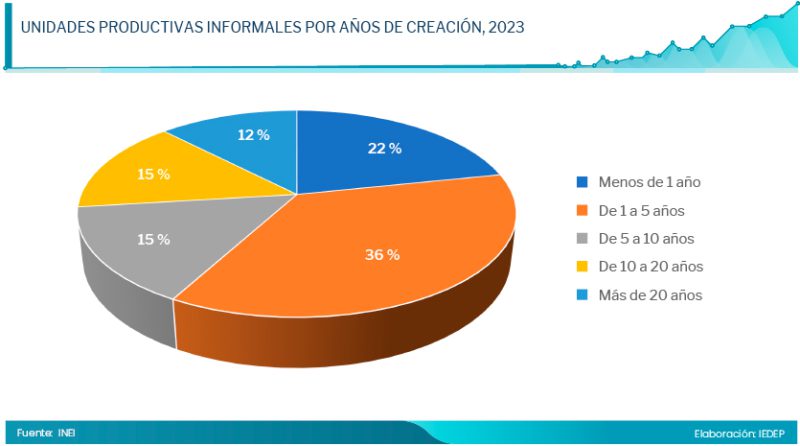 Del total de UP o negocios informales que operan en el país, el 36,3 % tiene de uno a cinco años de antigüedad, mientras que el 21,7 % tiene menos de un año de actividad. Las demás (42 %) ya vienen operando más de cinco años. Por otro lado, al preguntarles a los conductores de estos negocios por la motivación por la cual decidieron emprender en tal condición, el 57,6 % afirma que fue por necesidad económica, el 15,8 % porque quería percibir mayores ingresos, el 15,3 % quiso ser independiente y el 11 % restante tuvieron otras motivaciones. Este escenario nos muestra que gran parte de estos negocios informales son incipientes y que han surgido debido a la necesidad económica dado el contexto de la pandemia y el poco crecimiento económico del país del último quinquenio.