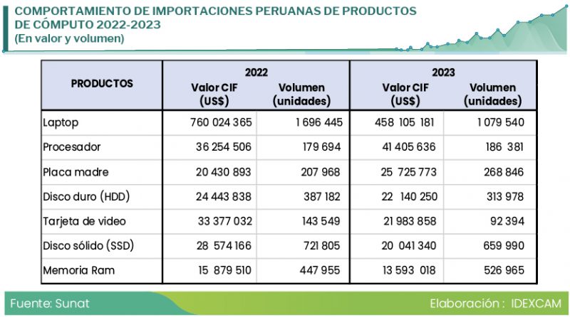 En respuesta a la necesidad generada por la pandemia de la Covid-19, en 2020, las autoridades peruanas implementaron el «trabajo remoto» como una alternativa flexible al teletrabajo, permitiendo a los empleados trabajar desde sus hogares sin la necesidad de acuerdos previos. Esta transformación impulsó una demanda extraordinaria de laptops y computadoras de escritorio y sus partes, elevando las importaciones en el año 2020 y parte de 2021. Para 2022, el comportamiento de la demanda de estos productos regresó a los niveles prepandemia, por lo que el Instituto de Investigación y Desarrollo de Comercio Exterior (Idexcam) de la Cámara de Comercio de Lima (CCL) se propuso investigar cuál fue el comportamiento para el 2023.