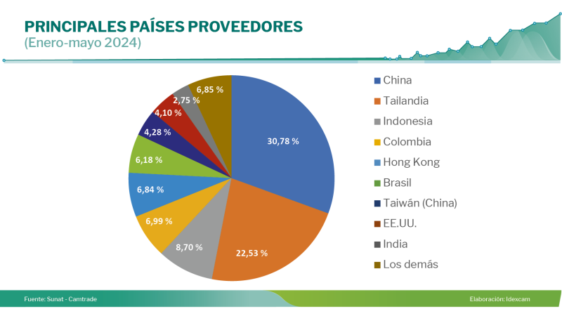 Entre enero y mayo de este año, las importaciones de partes de cierres de cremalleras disminuyeron un 3,38 % en valor y un 2,91 % en volumen respecto a similar periodo de 2023, con un valor importado de US$ 2 041 000 y un volumen de 467 toneladas. Los principales países proveedores fueron Tailandia (38,7 % de participación); Indonesia (21,82 %), China (16,50 %) e India (10,06 %).