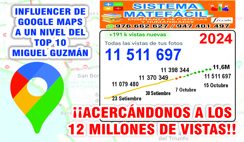 En octubre de 2024, Miguel alcanzó un impresionante hito: más de 11 millones y medio de vistas a sus fotos, videos y reseñas de lugares y empresas. Esta impresionante cifra no solo resalta su dedicación, sino también su impacto en la promoción del turismo y la cultura en Perú. A través de sus contribuciones, Miguel ha facilitado la visibilidad de museos, bibliotecas y emprendimientos peruanos, ayudando a que más personas descubran y valoren la riqueza cultural de su país.