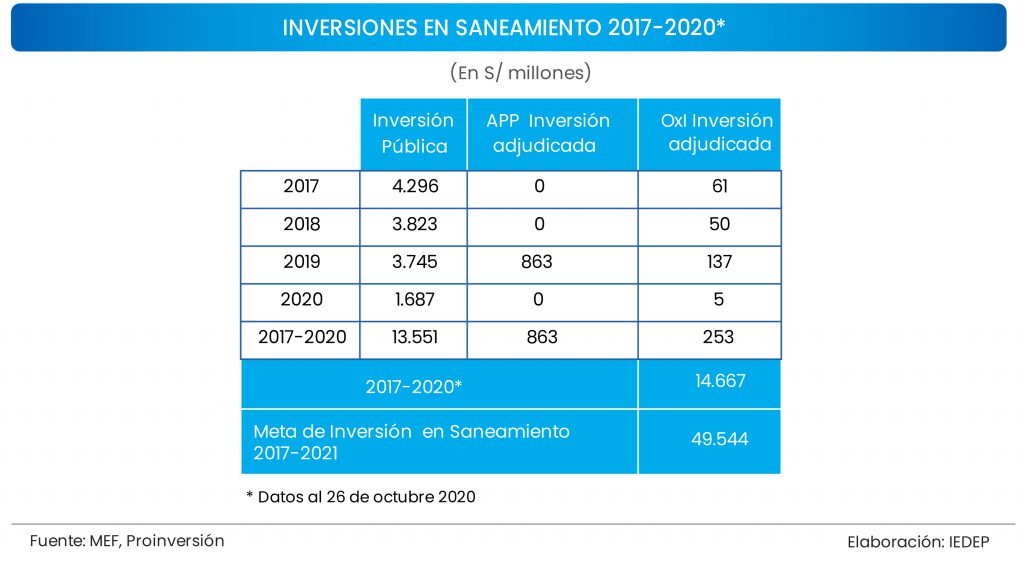 Inversión en saneamiento solo asciende al 30% de lo proyectado al 2021