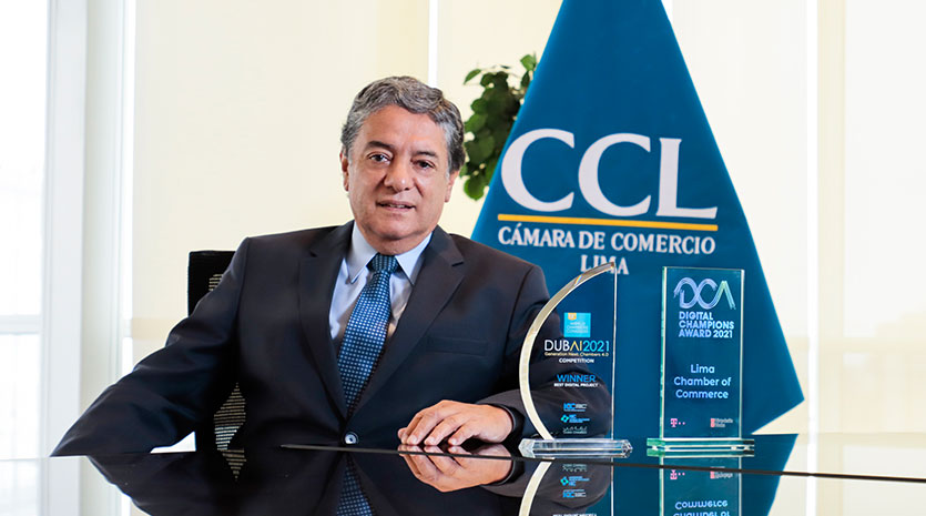 El gerente general de la CCL, José Rosas, explicó de qué manera el gremio empresarial viene apoyando la transformación digital de sus más de 15.000 asociados con el proyecto “Cámaras Digitales: La Nueva Normalidad”, el cual ganó la Competencia Mundial de Cámaras en Dubai el 2021.