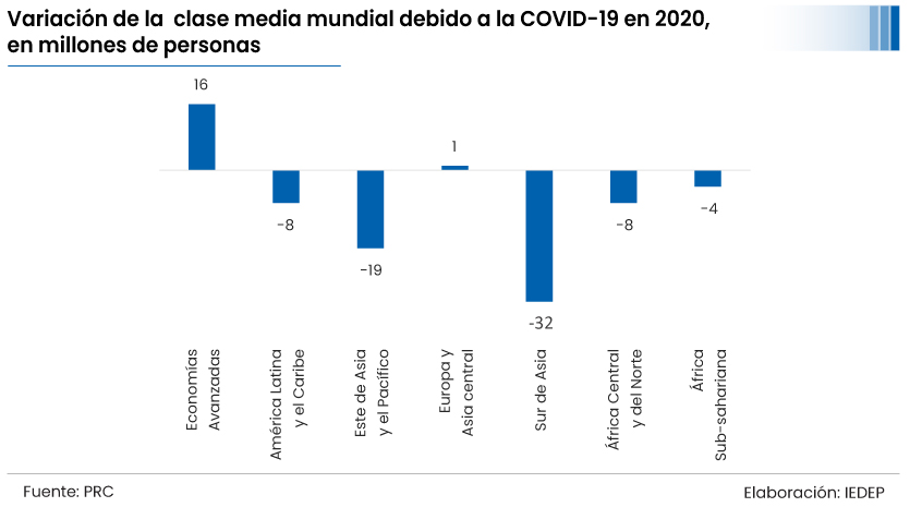 En el informe de Pew Research Center (2021) se muestra también la caída en el crecimiento de la clase media y el aumento desproporcional de la pobreza en el mundo, debido a la recesión económica.