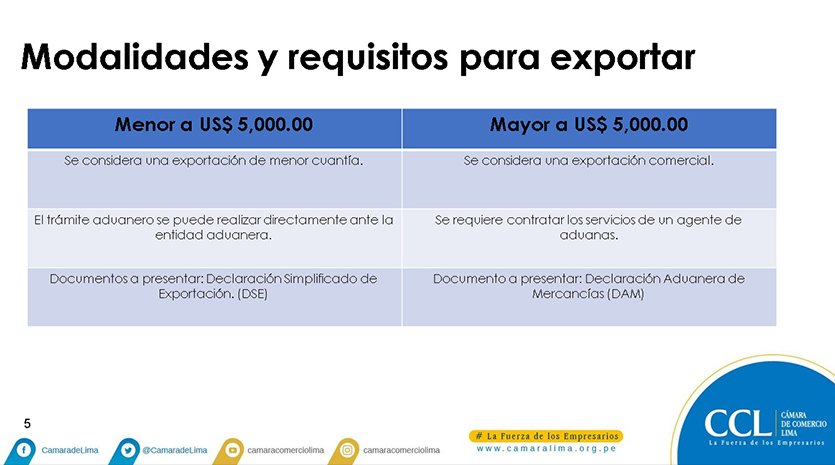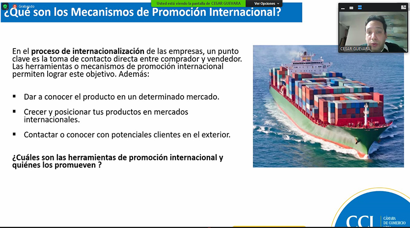 Con el objetivo de enseñar de manera práctica y sencilla los pasos fundamentales para una correcta gestión de exportación, la CCL realizó el webinar Introducción al comercio exterior, conoce como exportar, a cargo de Carlos Encalada, asesor comercial de Comercio Exterior de la CCL. Encalada dio información sobre las definiciones básicas de la exportación, sus modalidades y requisitos, los documentos necesarios para exportar y la clasificación arancelaria.