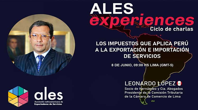 La Asociación Latinoamericana de Exportadores de Servicios (ALES) organizó su ciclo de charlas ALES Experiences denominada Los impuestos que aplica Perú a la exportación e importación de servicios, a cargo del presidente de la Comisión Tributaria de la CCL, Leonardo López.