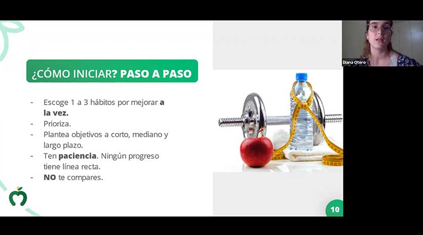 Dentro de los temas expuestos se habló sobre qué implica una alimentación saludable y su importancia, cómo se puede iniciar una alimentación saludable y tips para realizarla correctamente.