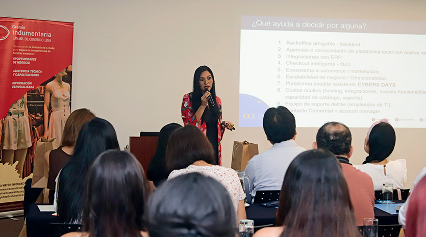 El Gremio de Indumentaria de la CCL realizó el workshop “Pautas para implementar un e-commerce de moda”. El evento estuvo dirigido a la red de empresas socias especializadas en moda e indumentaria. Esta actividad se realizó en conjunto con el área de Producto TI. Participaron como expositores Jaime Montenegro, Yuriko Huayana, Ana María Euscate y Christian Urresti. De esta manera, los participantes pudieron conocer más sobre el ecosistema del comercio electrónico (e-commerce).