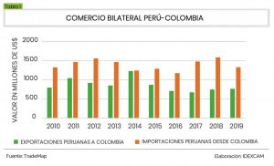El Perú y Colombia mantienen una relación de socios comerciales relevante, aunque la balanza comercial ha sido superavitaria para Colombia.