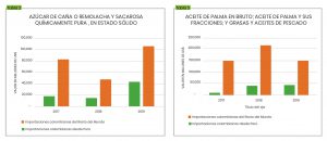 En el sector agroindustria y alimentos, específicamente en la línea de producto azúcar de caña o de remolacha y sacarosa químicamente pura en estado sólido, en el 2019, Colombia importó US$ 107 millones, de los cuales US$ 43 millones fueron provistos por el Perú, posicionándolo como primer proveedor de esta línea. Esta diferencia entre valores importados muestra potencial crecimiento para las exportaciones peruanas.