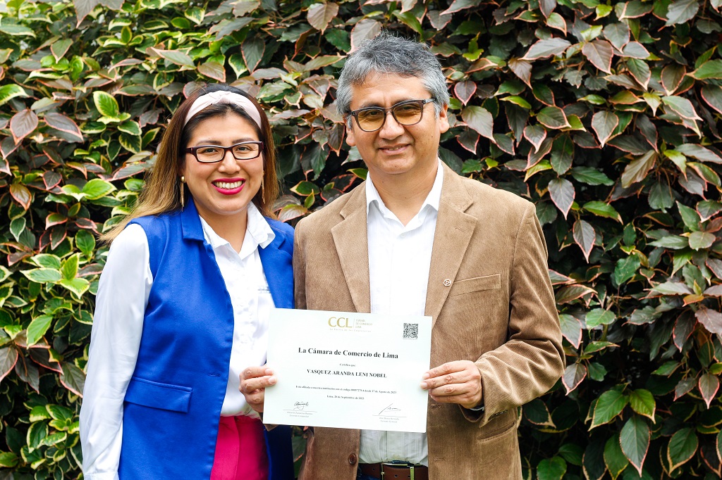El arquitecto Leni Vásquez junto a su esposa Deyssi Chávez en la Cámara de Comercio de Lima. (Foto: Sandi Narciso / CCL Conectados).