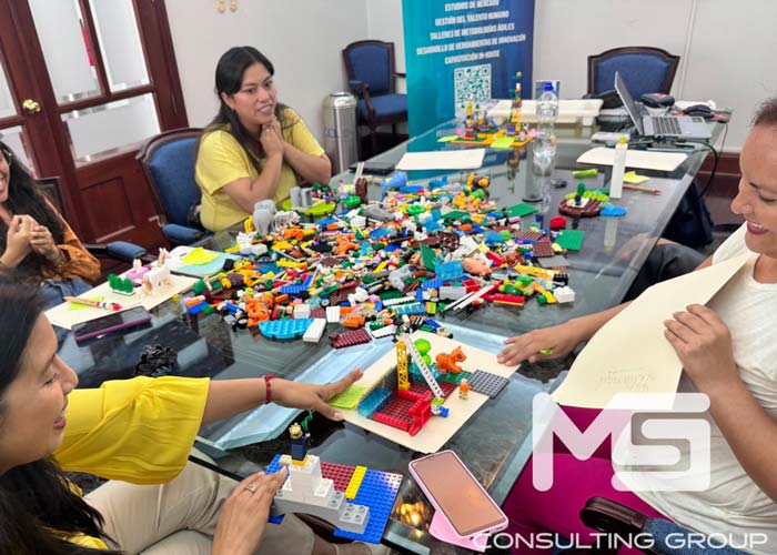 Siempre buscamos que nuestras estrategias sean dinámicas, prácticas y adecuadas al sector y contexto de cada organización. Una herramienta que ejemplifica esta versatilidad es Lego Serious Play, que permite construir, explorar, reflexionar y desarrollar ideas dentro del proceso de aprendizaje. La hemos utilizado con éxito en sectores públicos y privados: desde operadores turísticos en centros poblados alejados hasta personas de la tercera edad que forman parte de la llamada “economía plateada”, así como con jóvenes emprendedores que están iniciando su camino.