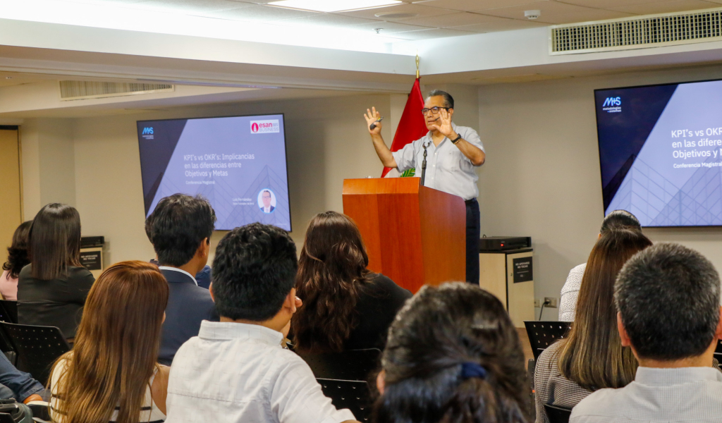 El primer bloque estuvo dedicado a la Conferencia Magistral, titulada “KPI’s vs OKR’s: Implicancias en las diferencias entre objetivos y metas”. Esta sesión estuvo a cargo de Luis Fernández, destacado profesor de ESAN Graduate School of Business y fundador de Metodologías + Soluciones (M+S). Fernández expuso con claridad las diferencias entre estos sistemas de medición y cómo las empresas pueden implementarlos para alcanzar sus metas estratégicas de manera más eficiente. Los asistentes tuvieron la oportunidad de profundizar en conceptos clave y resolver dudas sobre cómo los KPI’s y los OKR’s pueden ser herramientas transformadoras en la gestión empresarial.
