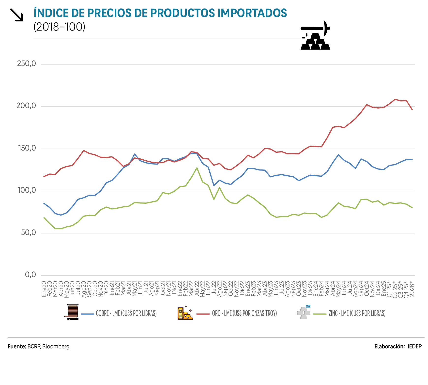 Según el Banco Central de Reserva del Perú (BCRP), los términos de intercambio se mantendrán entre el 2025 y 2026 en niveles cercanos a los de 2024, el más alto registrado en lo que va del siglo.