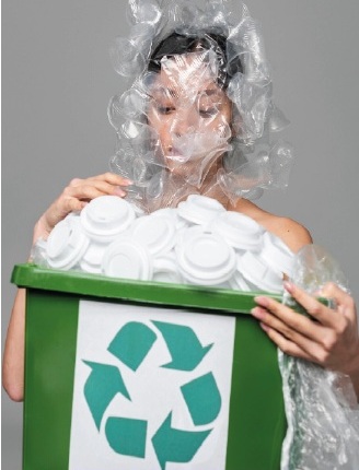 La imagen de una persona cubierta por plástico, sosteniendo un contenedor lleno de tapas plásticas con el símbolo de reciclaje, es una representación visual impactante del peso que el consumo excesivo de plásticos ejerce sobre nuestro planeta. Este mensaje va más allá de lo estético y nos invita a reflexionar sobre nuestras acciones diarias y cómo estas afectan el medio ambiente. La contaminación por plásticos es uno de los desafíos más urgentes de nuestra era, pero también una oportunidad para adoptar soluciones sostenibles que reduzcan su impacto.