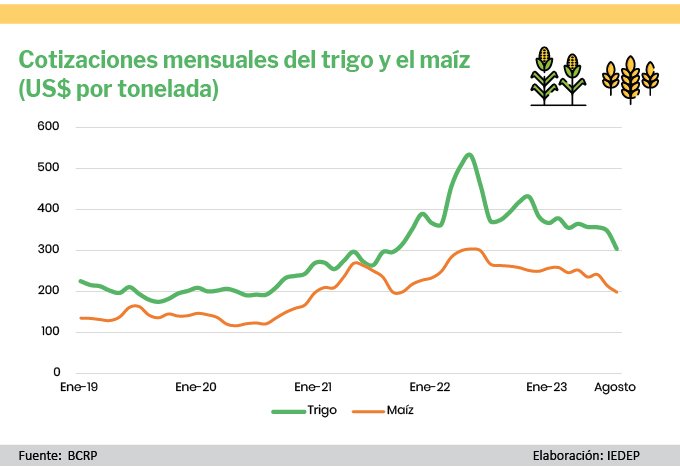 Ante esta situación, José Luis Castillo, analista de Comercio Exterior del Idexcam, explicó que el trigo es un insumo de vital importancia para la producción nacional de pan y fideos; en tanto que el maíz amarillo duro es sustancial para la alimentación del sector avícola peruano.